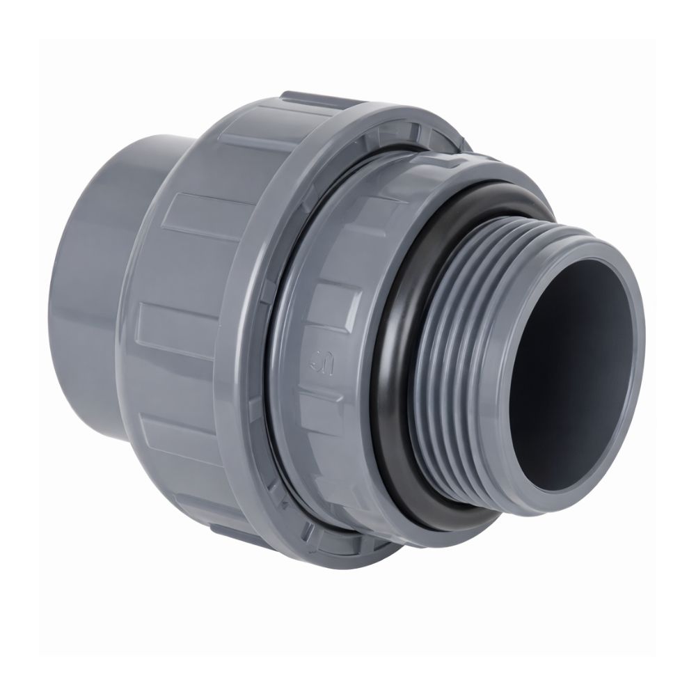 רקורד (מחבר רב-חוליה) PVC מעורב עם אטם (O-Ring) – 50 מ"מ (הדבקה) ל-1 1/2" (צול וחצי) הברגה זכר