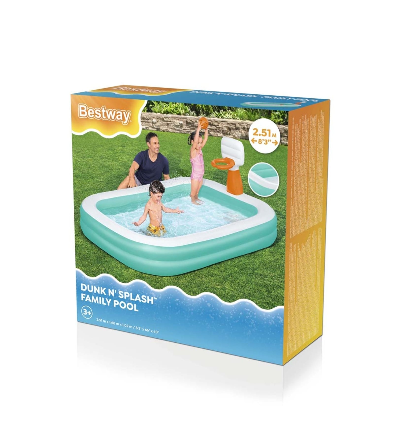 ציוד לבריכה ❯ חנות ❯ בריכות INTEX ❯ בריכה מתנפחת לילדים מלבנית עם כדורסל 2.51X1.68X1.02 סמ 54445 מבית BESTWAY