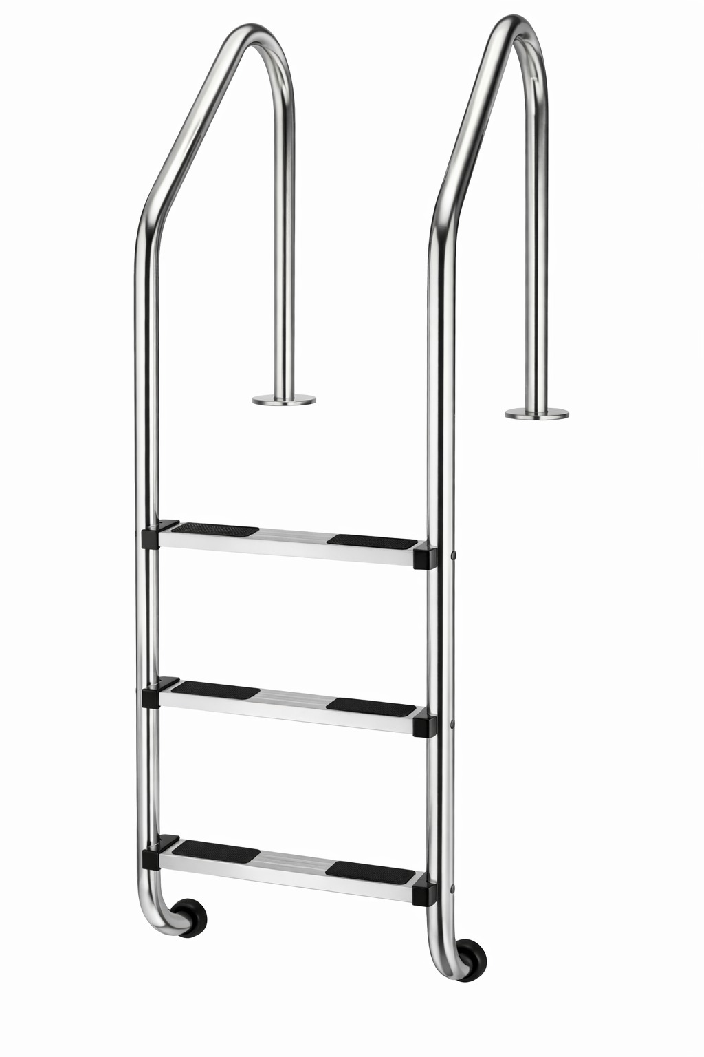 סולם כניסה ויציאה מעוצב ואיכותי לבריכה, הכולל 3 שלבים רחבים עם משטחים למניעת החלקה (Anti-slip) לבטיחות מירבית. הסולם עשוי במלואו מנירוסטה 316 מלוטשת, המעניקה עמידות עליונה לאורך שנים בתנאי רטיבות, מלחים וכימיקלים. פתרון פרקטי, יציב, ואלגנטי לכל סוגי הבריכות.